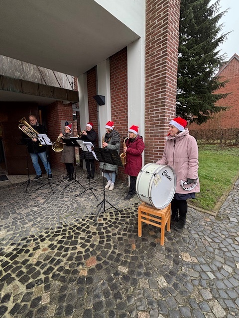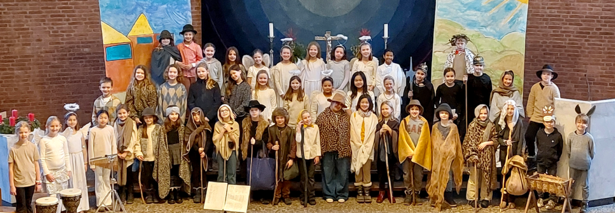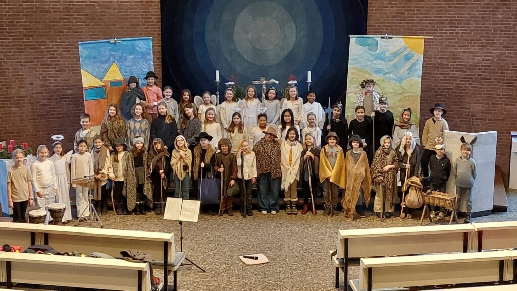 Vor der Kirchentür wurden wir von der Pastorin Frau Bostelmann und der Vikarin Frau Hoolt begrüßt sowie von unserem Bläserensemble mit weihnachtlichen Klängen. Die Chorkinder führten ihr wunderbares Weihnachtsmusical unter der Leitung von Frau Böttcher und Frau Heidenreich auf, musikalisch begleitet von unseren Musikerinnen und Musikern. Es gab zwei Aufführungen, da wir mittlerweile so viele sind.